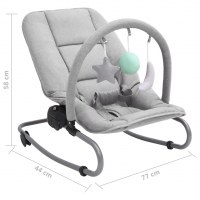 Denne babyskråstol har et stålstel, så den er robust og holdbar. Den har et justérbart ryglæn og fodstøtte, som opfylder babyens behov. Den indbyggede 3-punktssele øger barnets sikkerhed. Denne skråstol kan bruges i en fast position eller som en vippestol, hvilket kan hjælpe med at berolige din baby, når du har travlt. Den overhængende legetøjsstang holder babyen beskæftiget og tilbyder masser af underholdning.