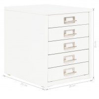 Arkivskab med 5 skuffer metal 28 x 35 x 35 cm hvid
