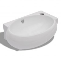 Vasken er lavet af ridsefast kvalitetskeramik, den er være korrosionsbestandig og holdbar og også let at rengøre. Vasken er egnet til at blive monteret på bordpladen eller fastgjort til væggen. Og på grund af overløbshullet behøver du ikke bekymre dig om, at vandet flyder ud.