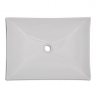Med sine skrå sidevægge og flad bund giver denne hvide vask et unikt og moderne design til din badrum.Handfatet er lavet af høj kvalitet og holdbart keramik, der gør det både meget holdbare og nemme at rengøre. Det er passende at montere vasken på bænken. Bemærk, at afløbet ikke er inkluderet.