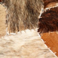 Vores eksklusive patchworktæppe i kolæder vil tilføje et luksuriøst og originalt element til din indretning.