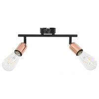 Den 2-vejs spotlampe kan bruges som væglampe og loftlampe. Den har justerbare hoveder, så du kan fokusere lyset på et kunstværk eller et hvilket som helst område, du ønsker at oplyse og give en moderne stemning. Den er også alsidig, da den kan bruges på kommercielle områder som displayområder og kunstudstillinger. Lampefatningerne i kobber giver en moderne charme og sikrer en lang levetid.