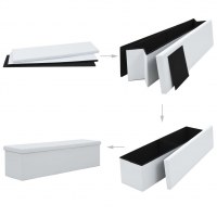 Opbevaringsbænken er lavet af MDF og beklædt med kunstlæder, hvilket er holdbart, stabilt og behageligt at sidde på. Den er forsynet med en aftagelig sædetop, der har rigelig opbevaringsplads til at holde en bred vifte af forskellige ting ude af syne, men stadig inden for rækkevidde. Kisten kan foldes for at spare plads, når den ikke er i brug.