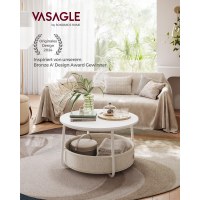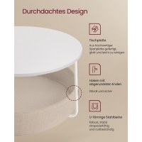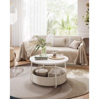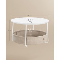 Gør stuen ryddelig og indbydende med dette runde sofabord fra VASAGLE. Bordet kombinerer en enkel, moderne form med en rummelig stofkurv, så du nemt kan holde tæpper, puder og bøger samlet og lige ved hånden. Den matte hvide bordplade står elegant til den kamelbrune kurv og skaber et roligt udtryk, der passer i de fleste indretninger.