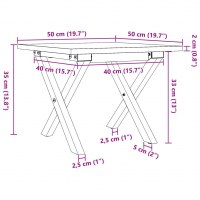 Sofabord 50x50x35 cm X-stel massivt fyrretræ og stål