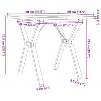 Spisebord 80x80x75,5 cm Y-stel massivt fyrretræ og stål