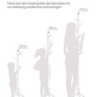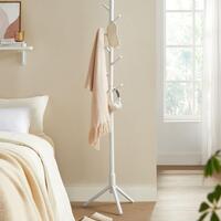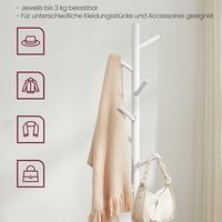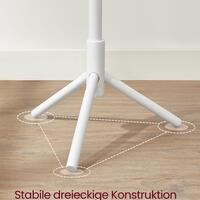 Den smarte 3-delte opbygning lader dig vælge højden, så den passer til både børn og voksne. Den 47 cm brede, trekantede base giver et stabilt fundament, og hele stativet kan bære op til 15 kg. Hver knage er 12,3 cm lang og tåler 1,5 kg – ideelt til daglig brug.