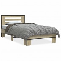 Sengeramme 90x190 cm konstrueret træ og metal sonoma-eg