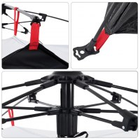 - Quick release-system: Sæt teltet op uden besvær med quick release-systemet! Læg teltet ned, forlæng de færdigmonterede stænger ud, indtil de låser på plads, og du er klar!